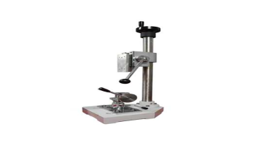 4.Place the specimen on the correct position, the concave indent of the Lower Fabric Clamp. And the button is positioned centrally. Through the press of the Arm of Lower Fabric Clamp to clamp the fabric tightly.